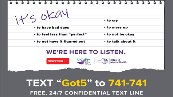 - Madison County Crisis Line- 315-366-2327 (option #1)